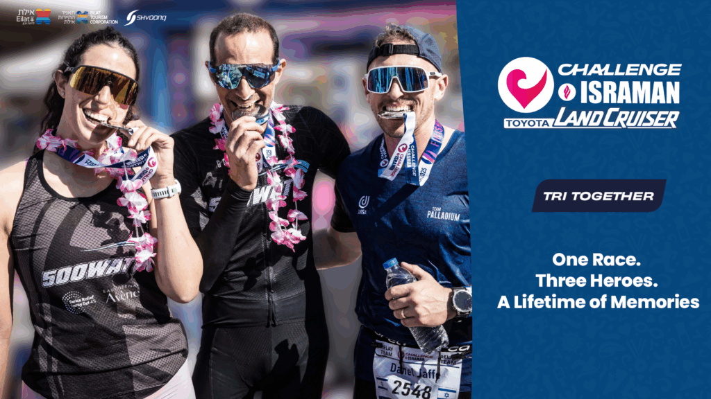 זו הדרך הקלה והמהנה ביותר להיכנס לעולם הטריאתלון. הביאו את החברים שלכם, חלקו ביניכם את המרחקים, ותגיעו יחד אל קו הסיום. אנחנו מביאים את צ'אלנג' ישראמן – אתם מביאים את הצוות!